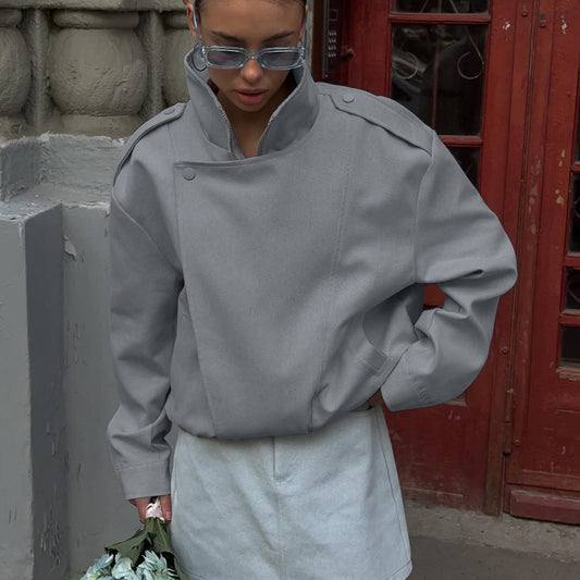 Aurora High-Neck Asymmetrical Zip Jacket – Urban Grey