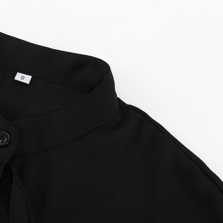 - 💖 Romantic Ruffles: Cascading ruffle detailing flows from the stand collar down the placket, providing texture and dimension.