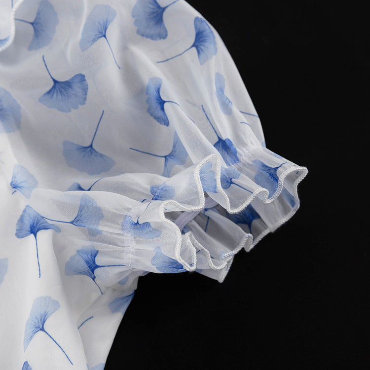The tailored waistline with peplum detail enhances your curves, while the puff sleeves add a touch of romance. The all-over blue floral print creates a dreamy yet polished aesthetic.